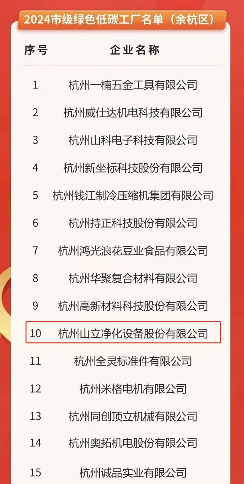 2024年,杭州广东会净化设备股份有限公司入选市级绿色低碳工厂名单,在绿色低碳事业上,再度实现里程碑式突破。