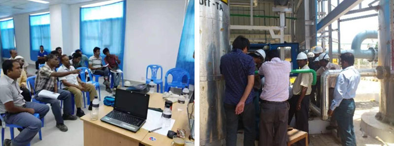 泰国某橡胶厂:该项目是我司优质代理商配套项目,现场总共三期,全部使用我司后处理设备;客户通知我司现场有一台冷干机,一开机就高压保护,无法正常使用;经过我司售后工程师的探讨分析和现场试验得知是因客户冷却水安装不合理造成,经更改管路后得到解决,后续又对现场所有设备做全方位检查以及现场人员培训;此后我司售后人员又陆续对现场进行跟踪回访,近两年设备一直稳定运行,客户对我方售后人员专业度非常满意。