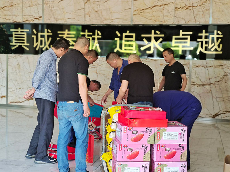 在慰问品发放现场,一份份礼品被整整齐齐地堆放着,各部门分别派了代表有序领取,场面十分热闹和喜庆。无论是象征团圆的月饼、还是象征丰收的水果和沉甸甸的大米,每一份都载满了深深祝福,寄托着公司对每一位员工的关爱。