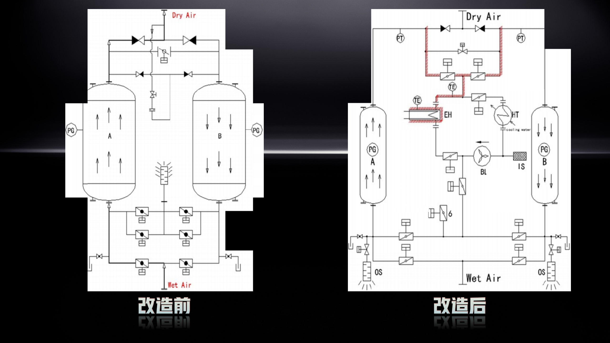 据了解,原设备为同行厂家 150 立方无热再生吸附式干燥机,我司经深入现场工况分析,创新提出‘零气耗鼓风热再生吸附式干燥机改造方案’。